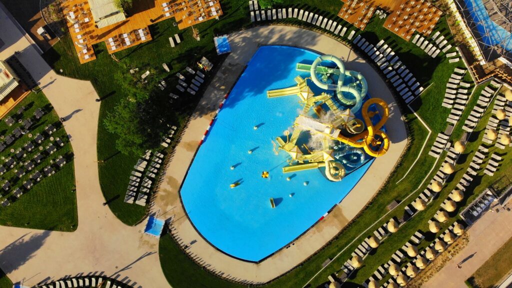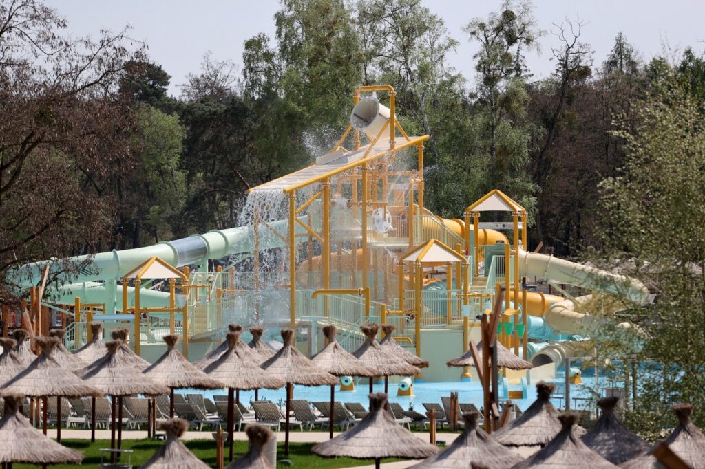 Dla najmłodszych gości przy płytszym basenie znajdują się pianki, makarony i deski, które pomagają w nauce pływania. Jest także strefa basenowa dla zaawansowanych, do głębokości nawet dwóch metrów. A także płytka niecka dla maluchów oraz spray park, czyli strefa rekreacyjna z niewielką ilością wody (kurtyny wodne, armatki, labirynty wodne), która zaprojektowana została w taki sposób, żeby korzystać z niej mogły także dzieci z ograniczoną mobilnością. Wokół kompleksu basenów dostępna jest strefa relaksu z 2000 leżaków. W bliskim sąsiedztwie jest ogromy wybór restauracji, gdzie można posilić się po atrakcjach.
