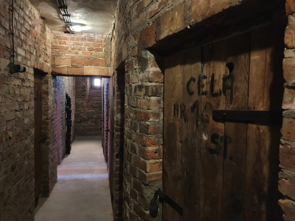 Zadziwiające jest to, że piwnice, w których przetrzymywano zatrzymanych, pozostały w nienaruszonym stanie: na ścianach i drewnianych drzwiach zachowały się inskrypcje pozostawione przez więźniów, a nawet numery cel – od 1 do 18. Pod ziemią znajdowały się także trzy karcery – dwa suche i jeden mokry. Każda ściana, każda kratka okienna w piwnicy zdaje się przemawiać – opowiada historię cierpienia, ale i niezwykłej odwagi. W inskrypcjach można odnaleźć proste znaki upamiętniające przeszłość, a także imiona i daty, które pozwalają choć częściowo odbudować losy ludzi uwięzionych w tym miejscu.